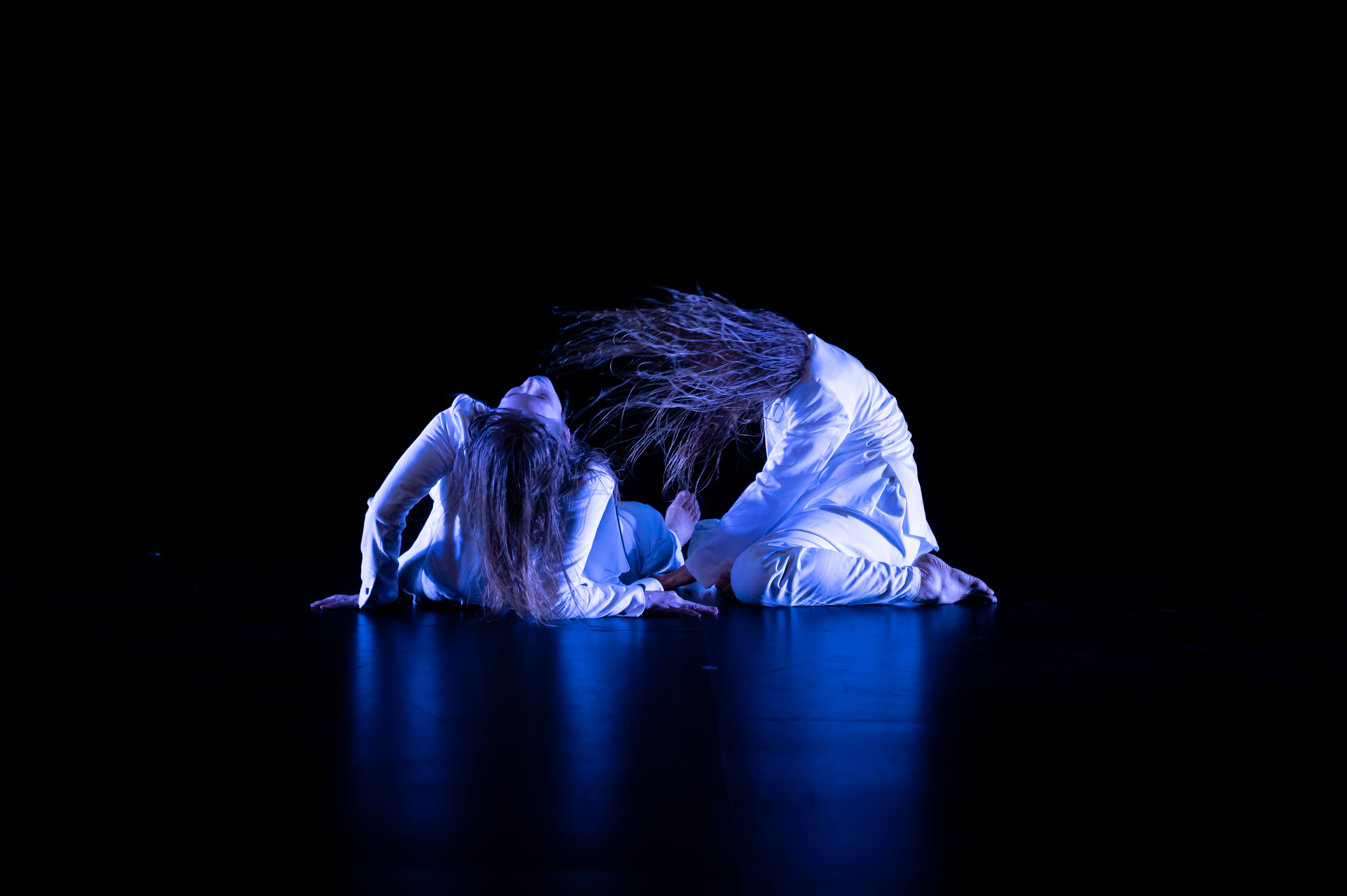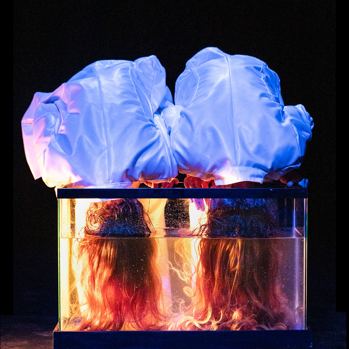 there we are. There. is a 30 minute, highly specific and rigorous exploration of the unknown. The duet mixes demanding choreography with isolated body movements, text, and visceral experiences with water to explore themes of intimacy and absurdity. The performers share the space with a fish tank filled with water, which they slowly and repetitively submerge their heads in and out of.