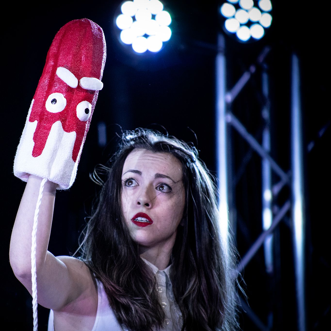 In this “serious contemporary dance solo” gone wrong, “performer Jocelyn” doesn’t realize that the audience can hear her every (doubtful and self-deprecating) thought. Desperate to fit in with other dance artists, Jocelyn performs her movement sequences - that is, until her bloody tampon falls out unexpectedly onstage. To make matters worse, her giant tampon (puppet), Tony Tamponi, is a sentient misogynist. Dramedy ensues. RHW is Mah's comical feminist battle cry, squeezing out every last drop of the everyday horrors of living within a female form, while juxtaposing it within the artifice of contemporary dance tropes and clichés.